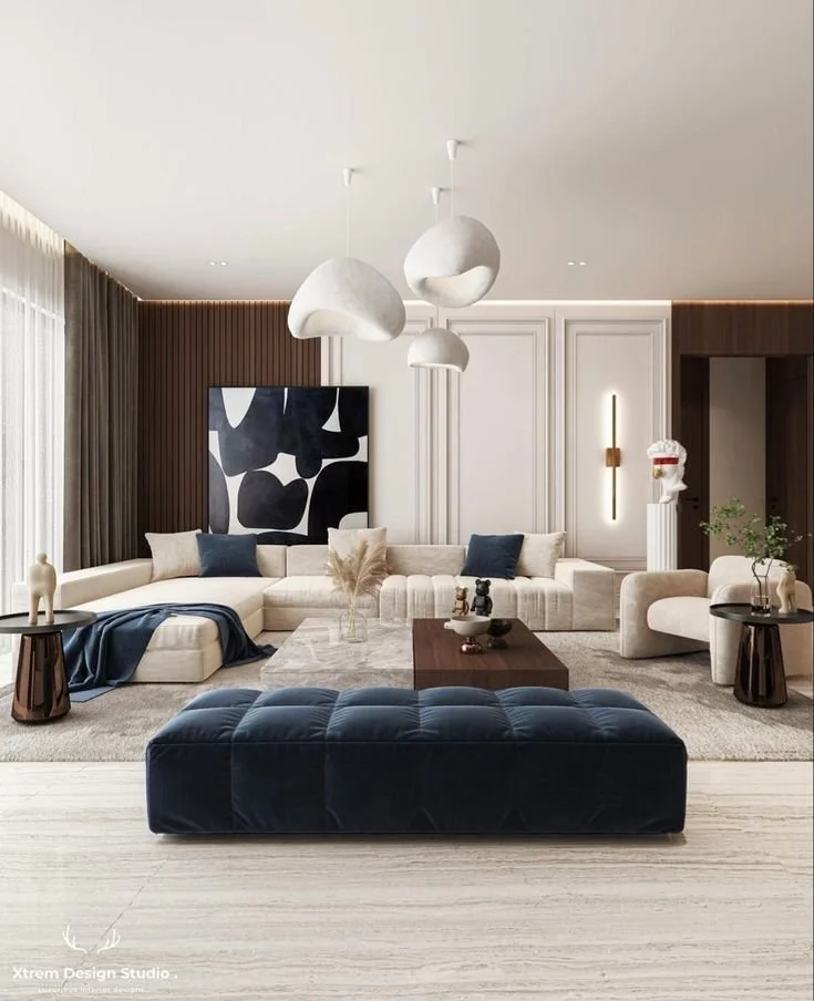 Artistic flair: Contemporary interiors often feature bold statement pieces—whether it’s oversized artwork, geometric lighting, or furniture that doubles as sculpture.